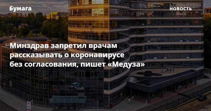 Министерство здравоохранения РФ разослало подведомственным врачам и медицинским учреждением письмо с требованием согласовывать любые публичные высказывания о коронавирусе. Об этом сообщила «Медуза» со ссылкой на документ и подтверждение пресс-службы Минздрава.
