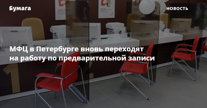 МФЦ в Петербурге вновь переходят на работу по предварительной записи