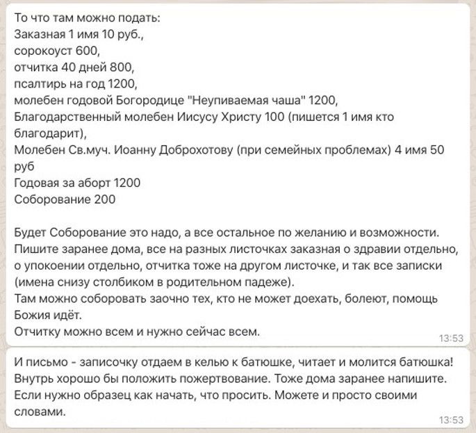 Молитва и сбор денег — за соборование, отчитки и другие «услуги», например, за «годовую молитву на аборт» — начинаются еще в автобусе, которым в сентябре 2020 года из Москвы в Чихачево отправились двое корреспондентов «Проекта». В три часа ночи в Чихачево начинается литургия — по канону она не может быть ночной, комментирует пресс-секретарь Кинешемской епархии Андрей Ефанов. К началу службы в храме на тонких матрасах спят «трудники» — верующие, оставшиеся в «скиту Иоанникия» — так называют это место сами местные верующие.
