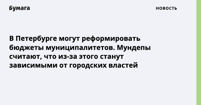 В Петербурге могут реформировать бюджеты муниципалитетов