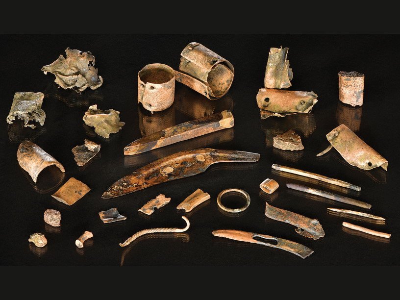 Помимо костей, были найдены более пятидесяти бронзовых наконечников стрел, наконечники копий, топор. В русле реки также были обнаружены останки как минимум четырех лошадей. В 2016 году водолазы нашли в реке тайник с бронзой в листах и слитках, а также бронзовыми орудиями и украшениями (зубило, серповидный нож, шило, фибулы, спираль). Также на берегу были найдены золотые спирали и оловянные проволочные кольца, служившие в то время для транспортировки олова, необходимого при изготовлении бронзы. Все находки, не имеющие отношения к оружию, считались личными вещами кого-то из участников битвы, возможно, спрятанными накануне сражения.
