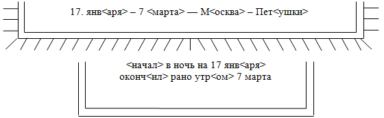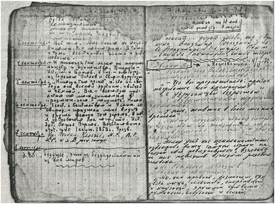 Еще в публикации Авдиева обращает на себя внимание не до конца расшифрованная запись с датами, близкими к тем, которыми позже Ерофеев датировал МП: «<нрзб> в ночь на 17 янв[аря], относит[ельно] рано утр[ом] — 7 марта» [16]. У «Захарова» она пропадает, и, может быть, поэтому на нее до сих пор никто не обращал внимания — нам, по крайней мере, о таких случаях неизвестно. Впрочем, даже если бы кто-то и обратил внимание на эту запись, делать выводы на основании одной полуразобранной фразы, не видя саму записную книжку, было бы преждевременно. Теоретически даты могли значить все что угодно, и тот факт, что Авдиев, видевший рукопись, эту запись никак не комментирует, мог говорить о том, что он считает ее малозначимой, а совпадение дат — случайным.