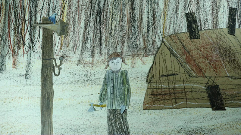 Съемки начались в октябре 2018 года, было несколько месяцев перерыва, но все равно это огромная работа, особенно для людей, которые впервые решили сделать мультфильм. Самое интересное в этой совместной работе — когда все участники включены по максимуму, когда уже есть понимание, как устроена работа, но еще нет усталости. Ребята начинают предлагать свои идеи, интересные детали, стараются снять сцену как можно живее, подробнее и искренне радуются результатам. На этот период приходится разработка основных сцен — облака на разрезанном целлофане, молнии из фольги от шоколадки, Николай и Лев работают за столом, заключенные рубят лес, музыкальная сцена в театре. И особенная сцена — звучит письмо Льва из лагеря о том, что, если бы не было искусства, природы и его семьи, для него не было бы смысла существовать. Он стоит на снегу у столба с репродуктором, из которого звучит Шаляпин, появляется его брат, который слышит того же Шаляпина. Братья в разных лагерях, но как будто рядом. И тут одно окошко гаснет.