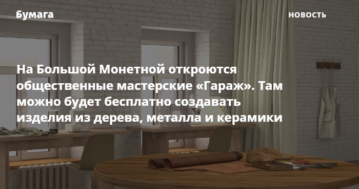 В декабре на Большой Монетной улице в Петроградском районе заработают открытые мастерские «Гараж». Там петербуржцы смогут бесплатно создавать изделия из дерева, металла и керамики и моделировать электронные устройства, сообщили «Бумаге» в пресс-службе проекта.