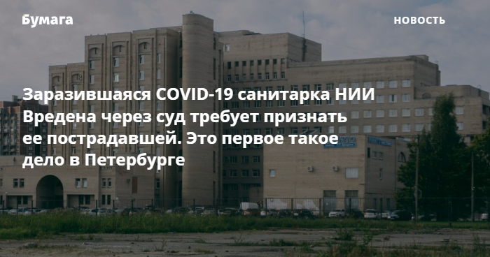 Заболевшая COVID-19 санитарка НИИ Вредена через суд требует признать ее пострадавшей
