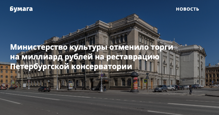 Министерство культуры отменило торги на миллиард рублей на реставрацию Петербургской консерватории