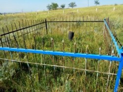 На одной из огороженных могил стоит столбик со стершейся надписью. С большим трудом удается разобрать, что на столбе написано "1938", но больше ничего.