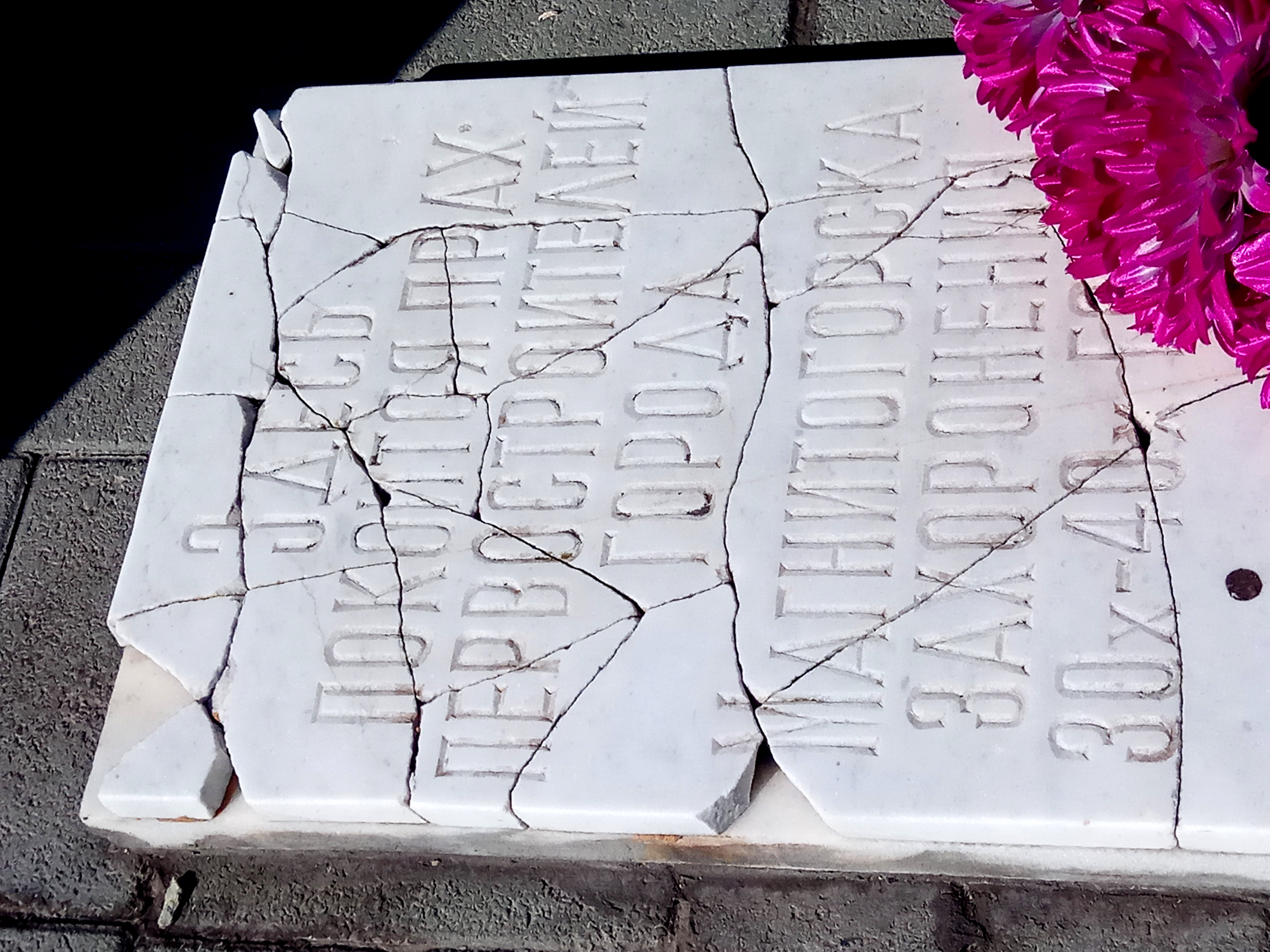 – Плита лежала разломанная, мы ее собрали по кускам, восстановили, – рассказывает краевед. – Я обратился за помощью к директору комбината ритуальных услуг. Денег он не взял, сделал вот этот памятник.