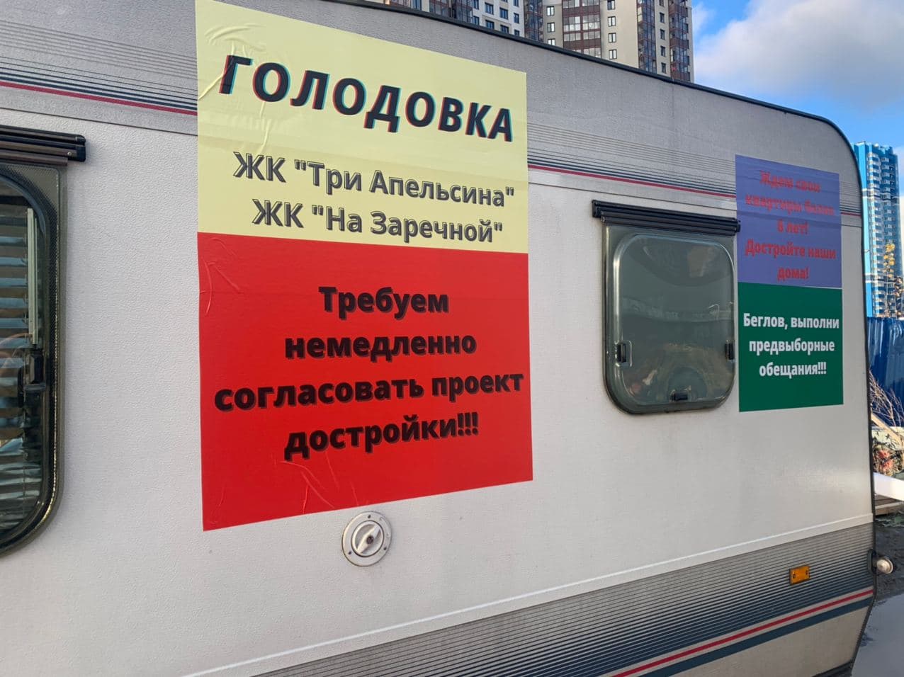 Дольщики петербургских жилых комплексов "Три апельсина" и "На Заречной" объявили бессрочную голодовку. Двое голодающих будут находиться в трейлере у недостроенных домов до тех пор, пока не начнется строительство. Об этом корреспонденту Север.Реалии рассказали дольщики у ЖК "На Заречной".