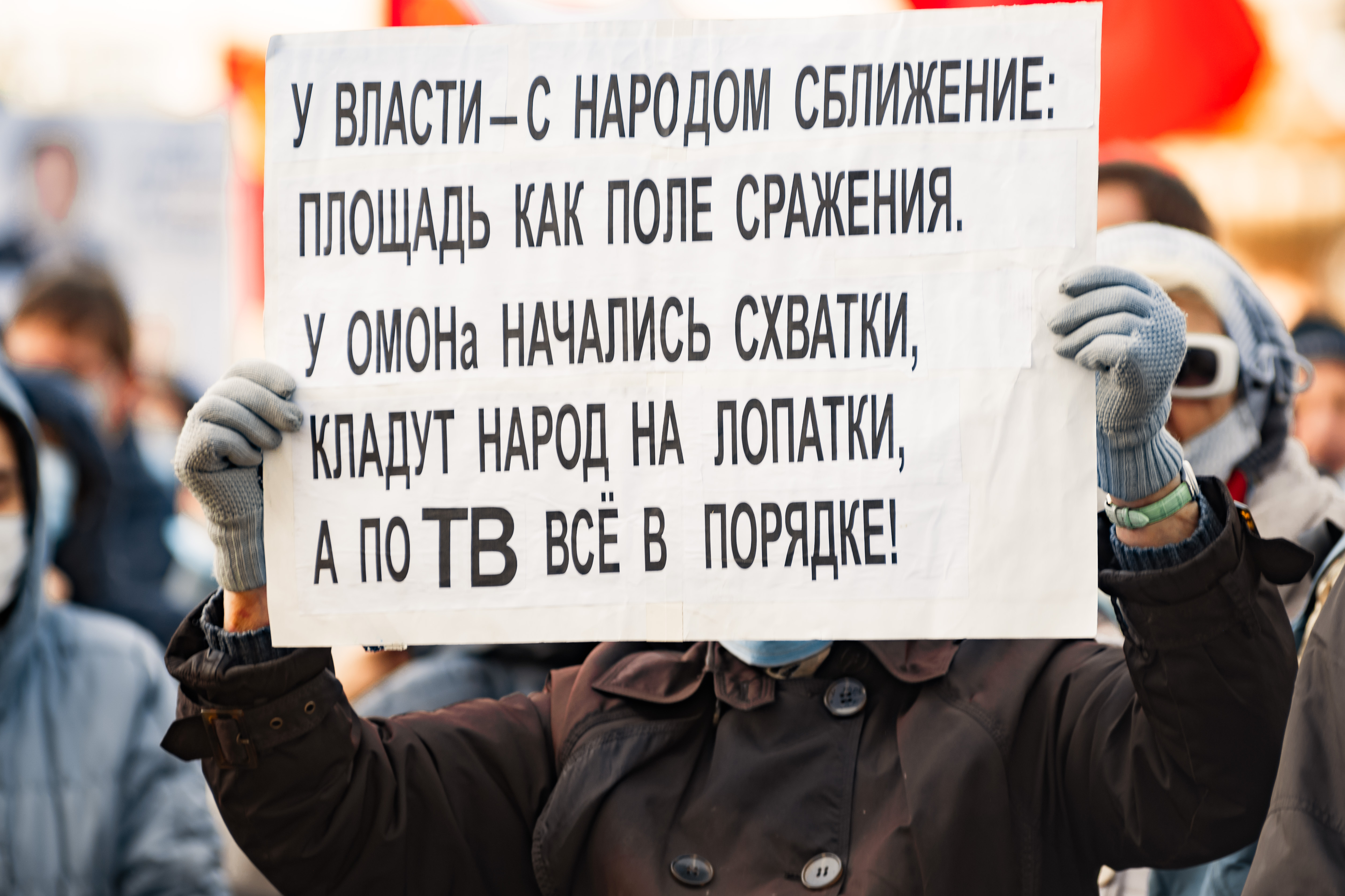 – А еще я обращаюсь к этой власти: недолго вам осталось, преступники. Вот на прошлый митинг у меня было "Любой диктатуре приходит конец, близок и ваш". Самые мои любимые кричалки – "Банду Путина под суд", "Путина в отставку". Хотя какая там отставка – его только суд должен ждать. У меня сердце кровью обливается от того, что в стране происходит. Это очень страшно. Конечно, кто-то скажет, мол, не стреляют же, мы как-то работаем, зарабатываем, кушаем. Но по факту у нас страшное государство. Осталось только проволоку колючую протянуть, и все. Пока она только незримая есть, эта проволока.