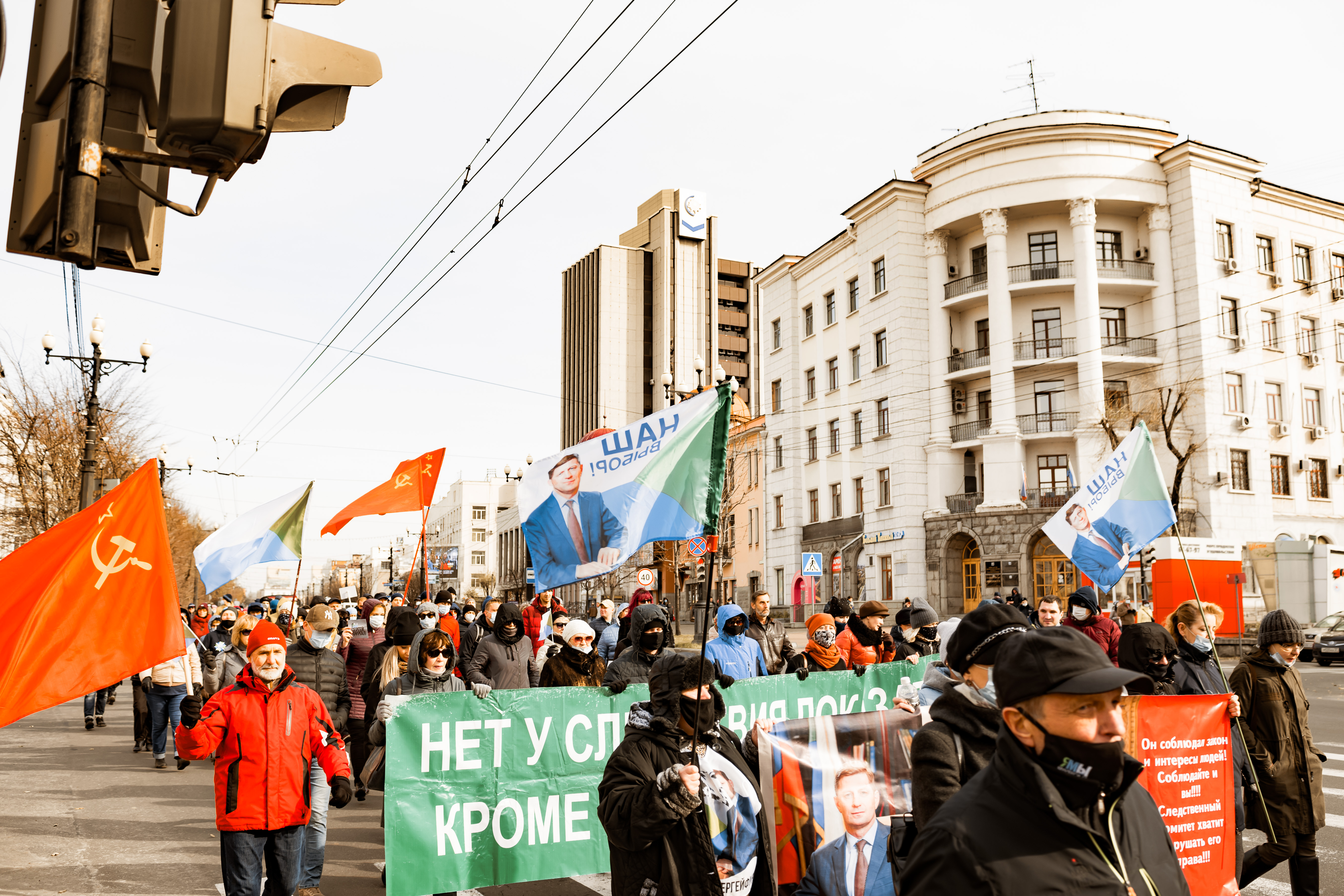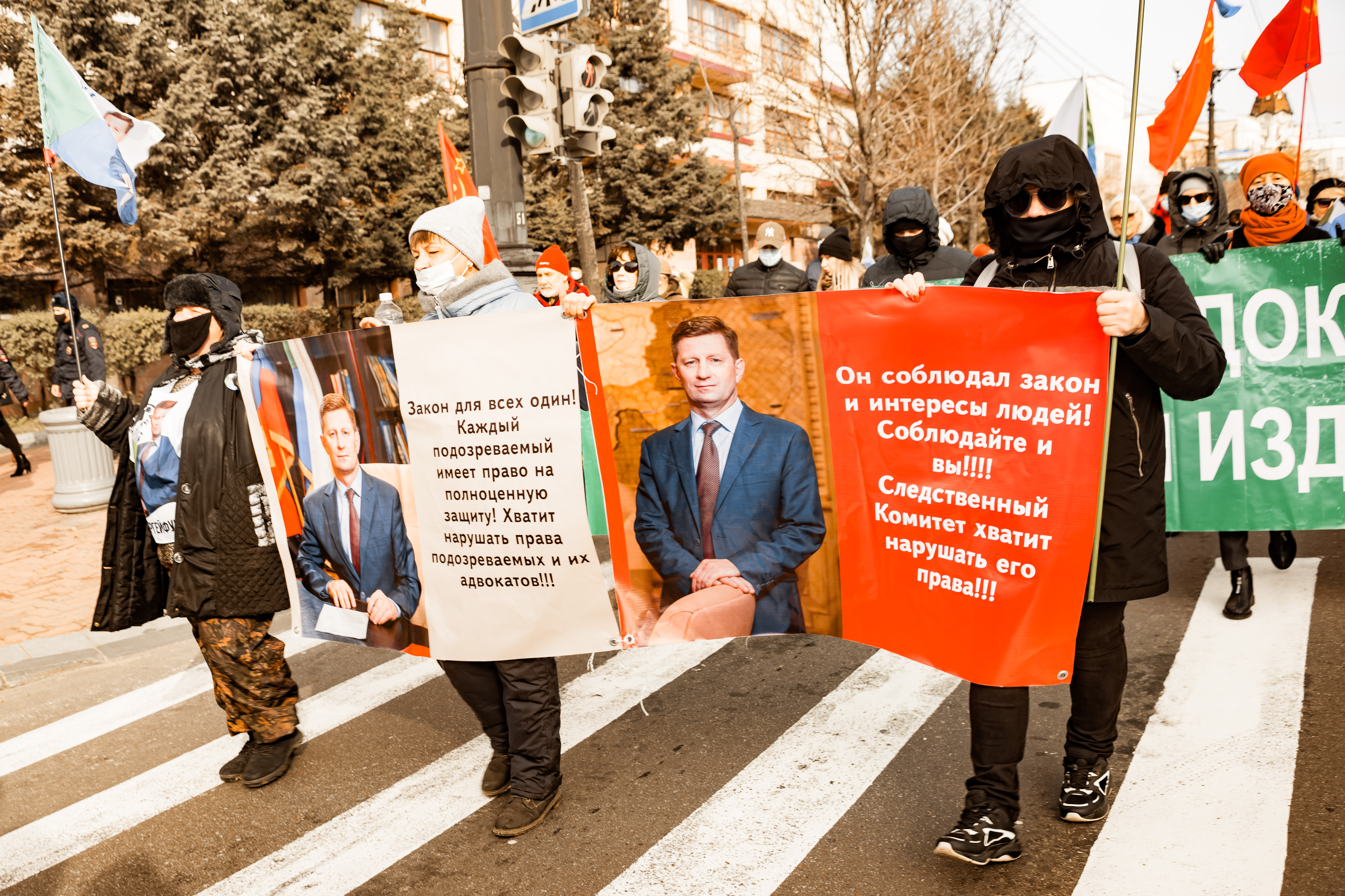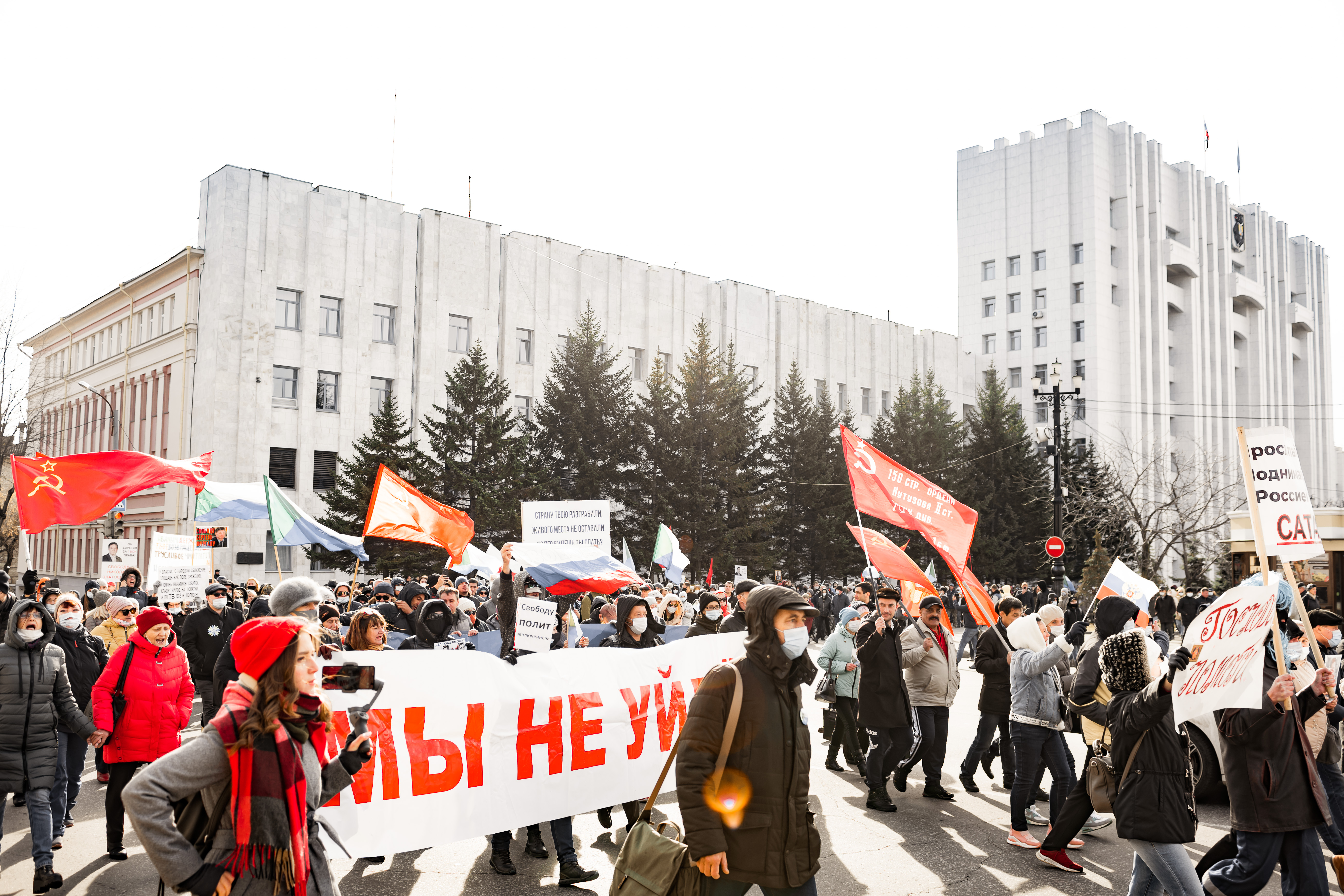 – Да он сам себя боится. А нам он тут никому не нужен. Мы мирные люди. Можем, конечно, быть суровыми дальневосточниками. Но протестуем мирно, ничего не громим, как он себе навоображал. Может, он просто сам и верит в то, что мы "горлопаны" и идем тут все крушить? – добавляет другой участник протестного шествия Андрей.