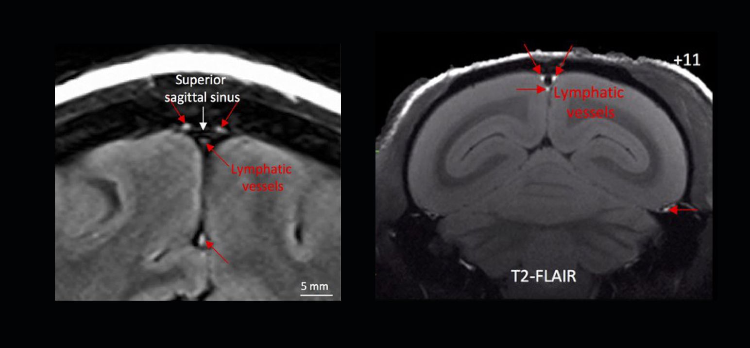 Разобраться с лимфатической системой мозга помогла МРТ высокого разрешения, причем случилось это совсем недавно — в 2017 году. Именно благодаря МРТ американские исследователи из Национального института неврологических расстройств и инсульта доказали, что у людей в мозге есть лимфатические сосуды.