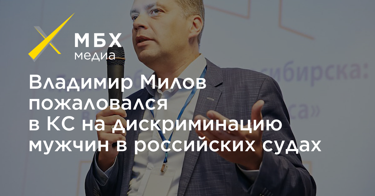 Соратник Алексея Навального Владимир Милов обратился в Конституционный суд с жалобой на дискриминацию мужчин в российских судах. Об этом сообщает «Апология протеста».