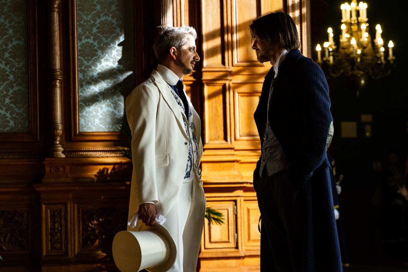 Есть в Петербурге и свой Мориарти — мечтающий модернизировать Россию до состояния «второй Англии» обер-полицмейстер Знаменский (Константин Богомолов). «Англофил?» — спрашивает Шерлок у элегантного и чопорного чиновника в белой меховой жилетке. «Расскажете потом, что меня выдало», — небрежно и иронично бросает тот.