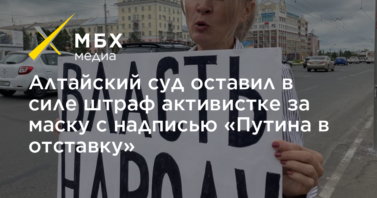 Алтайский суд оставил в силе штраф активистке за маску с надписью «Путина в отставку»