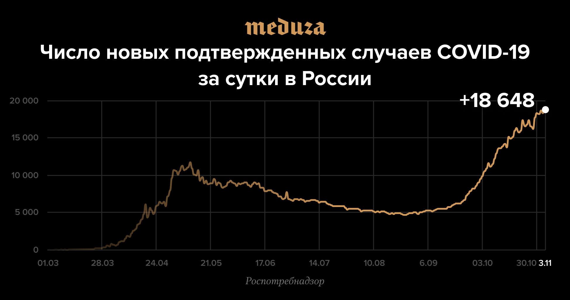 Днем ранее в стране были выявлены 18 257 случаев заболевания. Максимум суточного прироста больных с начала эпидемии — 18 665 случаев за день — фиксировали 1 ноября.