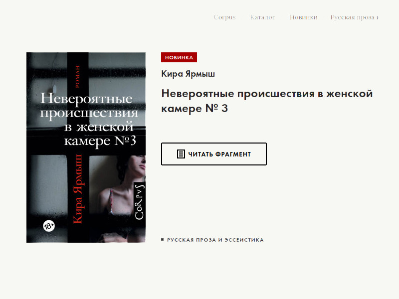 Пресс-секретарь Алексея Навального Кира Ярмыш выпустила свой первый роман под названием "Невероятные происшествия в женской камере N3". Он повествует о девушке Ане, которая впервые получает 10 суток ареста и оказывается в спецприемнике за участие в антикоррупционном митинге.