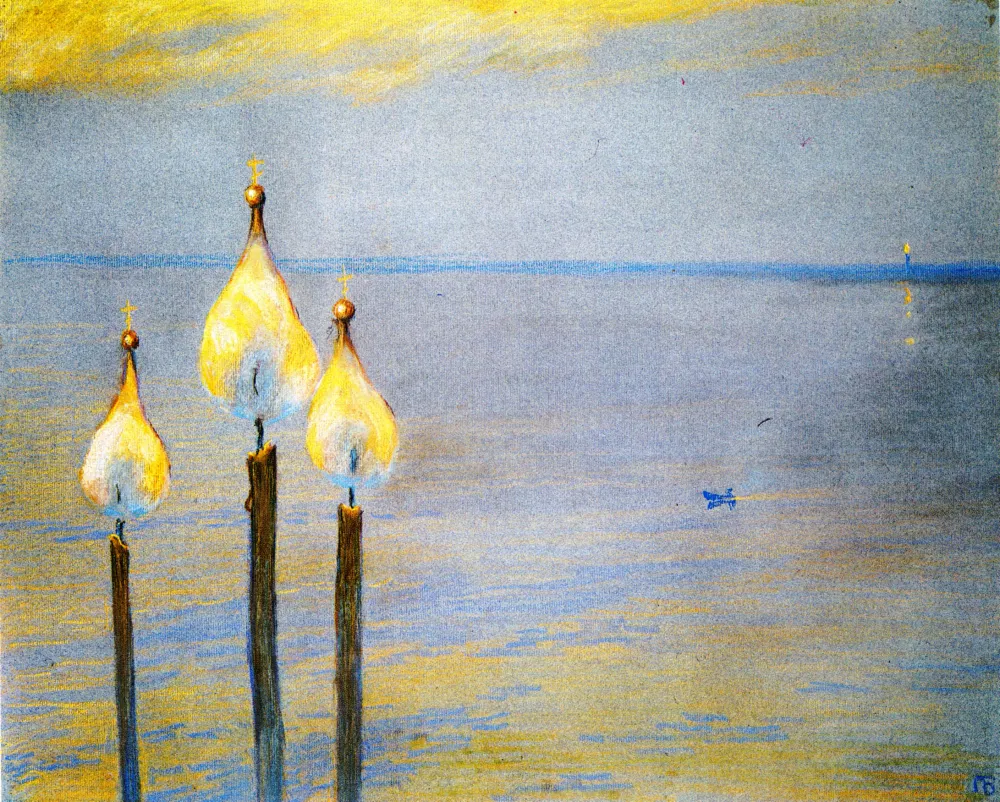 Последняя работа, написанная на бумаге, которую я взяла из мастерской уже после папиной смерти, была кнопками прикреплена на доске, это «Плещеево озеро». Это его поздняя работа, она незаконченная. Там возникает свеча, пламя которой превращается в золотистый купол. Одна из последних папиных работ — «Вечный покой»… Да, безусловно, в этих картинах было какое-то предчувствие ухода, но когда он нам их с мамой показывал, то у нас тогда никаких тревожных предчувствий возникало. И потом, конечно, ступни ног на картине «Восхождение» с бирочкой на щиколотке…