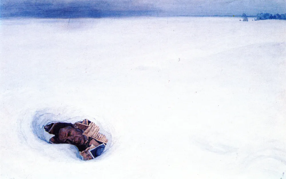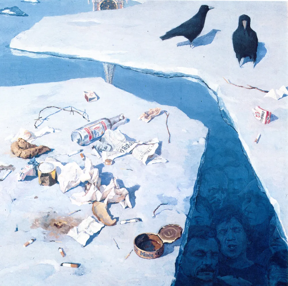 Работа «Грачи прилетели» не закончена до конца (не прописаны как следует ни льдины, ни птицы, ни Кремль, ни грязь на льдинах): там между льдинами — лица. Но никогда ни у кого эта картина не вызывала вопросов, потому что между льдинами — люди, чьи имена тоже замалчивали: Высоцкий, Цветаева, Шукшин, Тарковский…