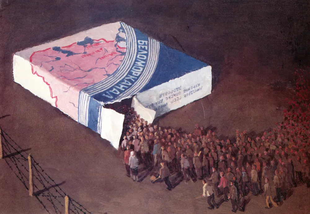 Летом 1985 года папа написал «Беломорканал», это был внезапный порыв, но, кажется, эта картина «вызревала» в нем очень давно. Мама вспоминала, что свою первую картину из этого цикла он создал в Одессе, где был на гастролях с Театром Советской Армии, и пошел ее показывать главному режиссеру Юрию Ерёмину, чтобы узнать его мнение. А тот почему-то решил, что картина предназначена ему, что это подарок. Он взял и сказал: «Ой, спасибо Вам большое!» И взял ее себе. Папа, очень растерянный, вернулся в гостиничный номер и сказал маме, что ему было неудобно сказать «верните, это совсем не Вам, я лишь принес показать», поэтому сделал еще один вариант этой картины, немножко большего формата, а самый первый так и остался у Ерёмина.