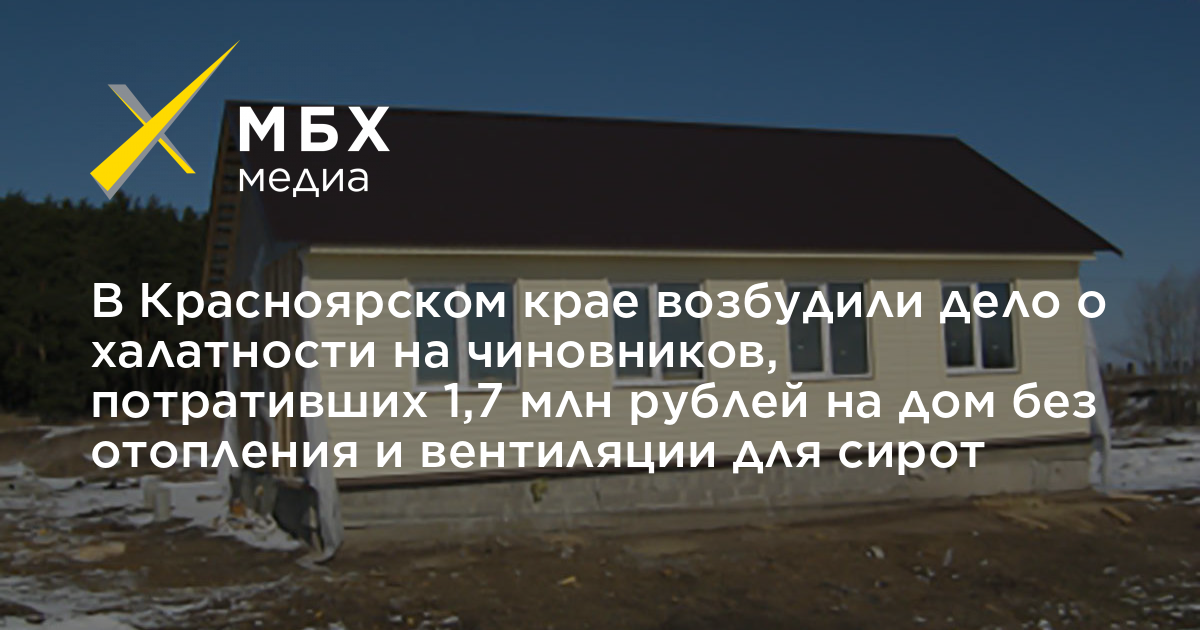 В Красноярском крае возбудили дело о халатности на чиновников, потративших 1,7 млн рублей на дом без отопления и вентиляции для сирот