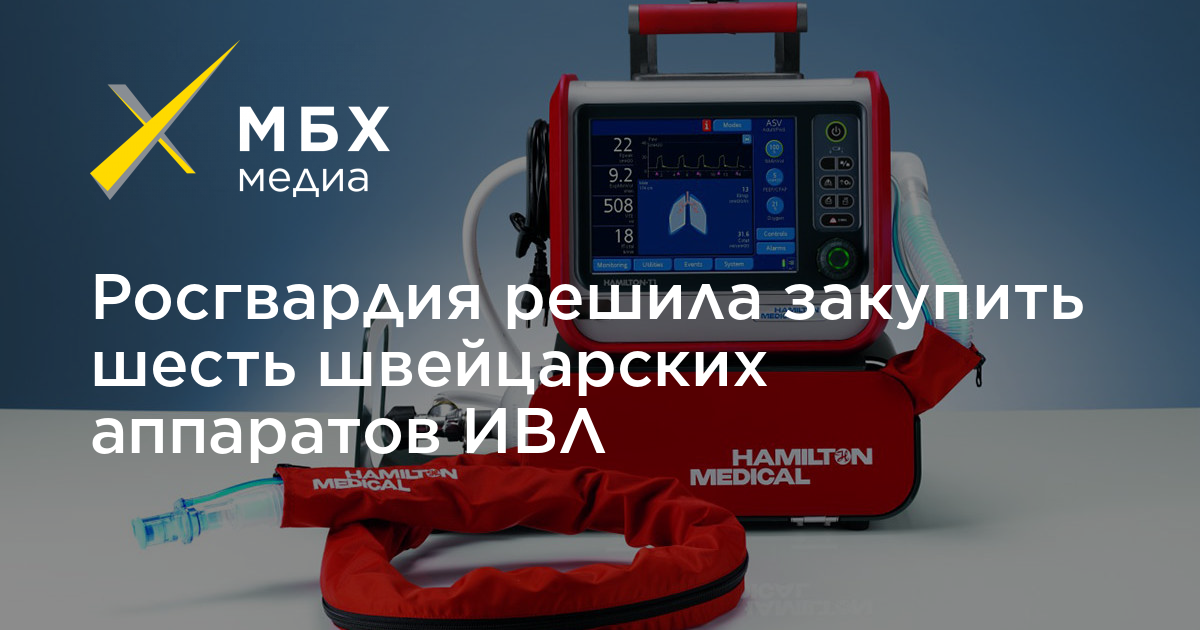 Росгвардия планирует приобрести шесть аппаратов искусственной вентиляции легких (ИВЛ) Нamilton-T1, которые производит швейцарская компания Hamilton Medical. Соответствующий запрос цен на устройства «МБХ медиа» обнаружило на портале госзакупок.