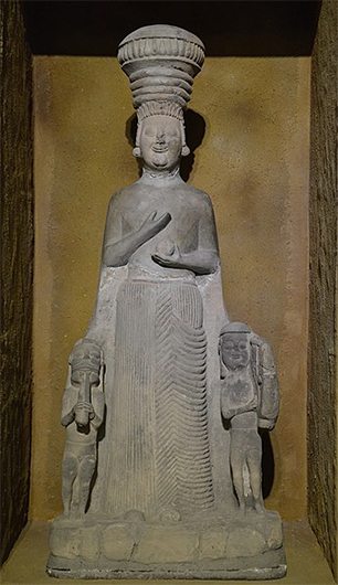 © Anadolu Medeniyetleri Müzesi Кибела. VI век до н.э Прекрасной иллюстрацией аркадского понимания гармонии могла бы стать не так давно найденная в Богазкале (бывшей хеттской Хаттусе) фригийская статуя Кибелы, датируемая VI веком до н.э. Справа и слева от Кибелы стоят двое, чью небожественную природу выдает размер — они чуть выше колена богини (но такими и должны быть люди рядом с Великой Матерью, в чем уверял нас и Апулей). Один из них играет на авлосе, другой — на кифаре. Музыка и Слово — а игра на кифаре всегда ассоциировалась в античном мире со Словом (и гомеровский эпос, и поэзия лириков всегда декламировались в сопровождении игры на лире или кифаре) — предстают здесь равными по значению посредниками Великой богини, служащими ее воплощению, то есть воплощению гармонии, заложенной в природе. Таким же было и восприятие Слова и Музыки в Аркадии. Здесь игра на авлосе не «создает помеху в деле воспитания, так как при ней бывает исключена возможность пользоваться речью», как наставляет нас Аристотель («Политика», VIII, 6, 1341a), но наравне со Словом является реализацией Закона, номоса, определяющего порядок мироздания. Неудивительно поэтому, что именно в Аркадии появился бог, которого Пиндар называет «сопутником Великой Матери» («Парфений Пану», 76), чье имя, изначально связанное со словами «пастух», «пасти» [14], очень быстро обретает новую этимологию: его производят от слова πάς — «всё».