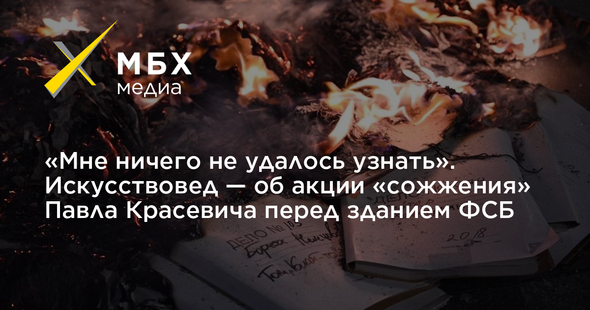 «Мне ничего не удалось узнать». Искусствовед — об акции «сожжения» Павла Красевича перед зданием ФСБ