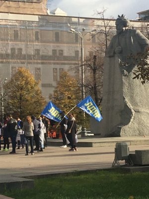 Активисты ЛДПР собрались на площади Революции на встречу под лозунгом «7 ноября — самый страшный день в истории нашей страны». Они выступают за переименование тех топонимов, которые сейчас носят имена деятелей советской эпохи, причастных к террору и другим преступлениям.
