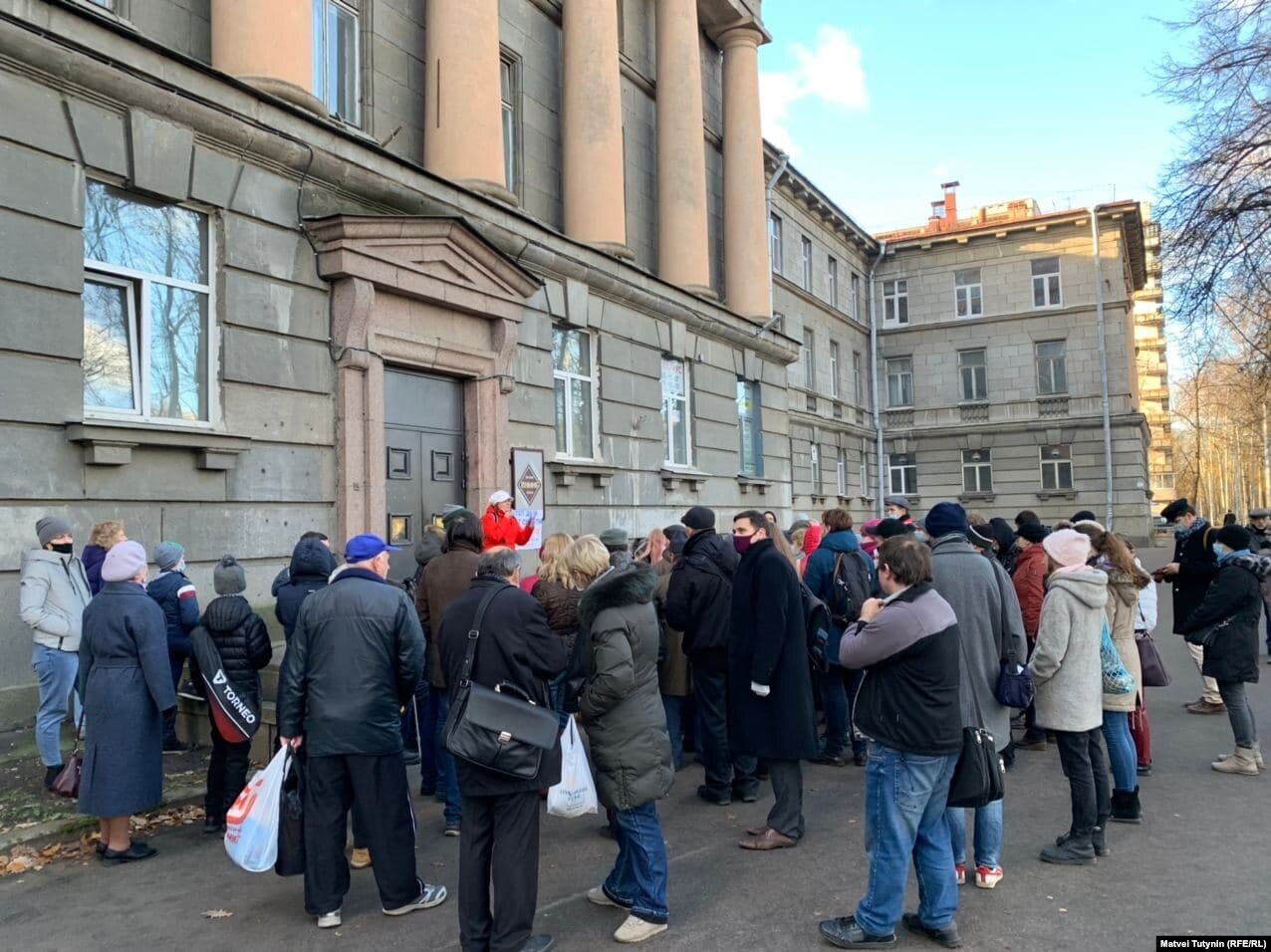 В Петербурге 7 ноября у здания бывшего ВНИИБ целлюлозно-бумажной промышленности собралось более 30 человек на акцию протеста против сноса здания. Они собрали подписи в его защиту, а также скандировали "Сносу нет!", передает корреспондент Север.Реалии.