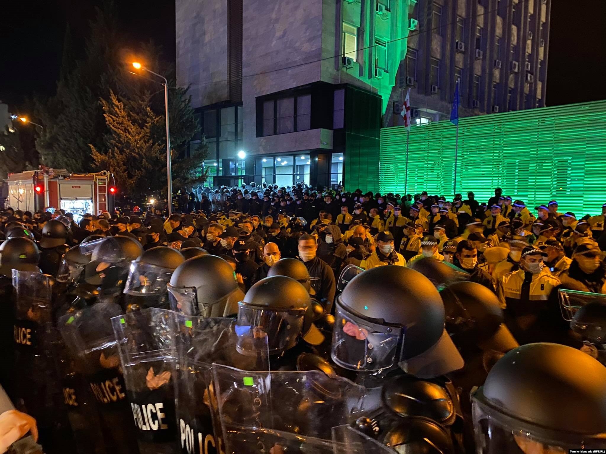 Ранее на многотысячном митинге в Тбилиси в воскресенье лидеры оппозиции выдвинули ЦИК "ультиматум" - удовлетворить их требования в течение вечера. Этого, однако, не произошло, после этого демонстранты направились к зданию ЦИК, где их встретила полиция.