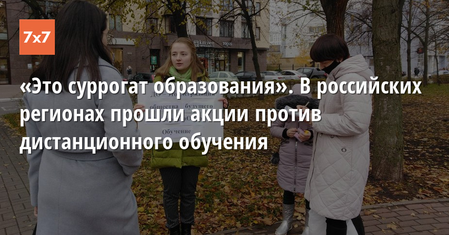 Жители нескольких российских городов 7–8 ноября вышли на одиночные пикеты, чтобы выразить протест против дистанционного обучения в период пандемии коронавируса. Они заявили, что изоляция детей пагубно повлияет на качество образования и затруднит процесс социализации.
