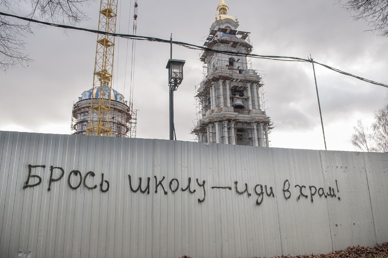 Себя проявила и несистемная оппозиция. Неизвестные лица нанесли на разные места в городе граффити с призывами помнить Октябрьскую революцию, бороться с режимом. Неизвестные не обошли своим вниманием даже территорию вокруг памятника Ленину. На заборе, окружающем строящийся храм, появились ироничные надписи: "Брось школу - иди в храм!" и "Ильич, вставай, они ******ли".