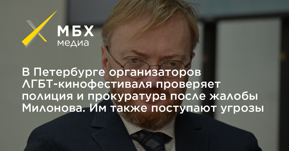 В Петербурге организаторов ЛГБТ-кинофестиваля проверяет полиция и прокуратура после жалобы Милонова. Им также поступают угрозы
