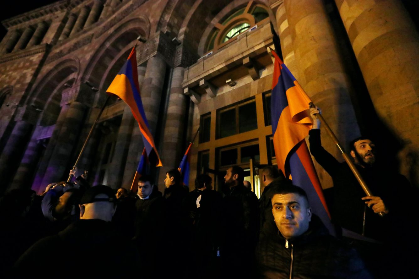 После заявления Пашиняна о «чрезвычайно болезненном решении» в Ереване начались волнения. На улицы города вышли сотни протестующих, которые собрались у здания правительства Армении и прорвались внутрь сквозь кордон охраны, разбивая окна и громя внутренние помещения. Протестующие выкрикивали ругательства в адрес премьер-министра, после чего направились в сторону его особняка. Телеграм-каналы призывали жителей Еревана выходить на улицы города. По словам Пашиняна, из его резиденции украли компьютер, часы, парфюмерию, водительские права и другие вещи. Кроме того, протестующие избили спикера парламента Армении Арарата Мирзояна, он в больнице.