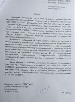 21:18 Хабаровский штаб Навального публикует рапорт полицейских, ставший поводом для задержания Смоленского.