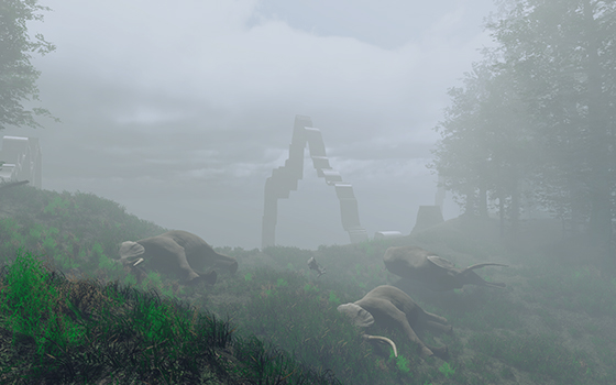 — Да, многие объекты, которые я первоначально задумал, не были созданы. Дело в том, что сжатый срок в семь недель на выполнение проекта потом сократили до четырех. Я каким-то чудом сумел сделать техническую часть, но, к моему огромному сожалению, на художественную часть осталось очень мало времени, и пришлось использовать очень буквальные решения. Хотя мне хотелось, чтобы виртуальное пространство, энвайронмент, вместило некоторую область коллективного бессознательного и не содержало буквальных образов: чтобы людей триггерило что-то, чего они, может быть, сами до конца не понимают. Но для этого надо было бы устроить поиск таких вещей.