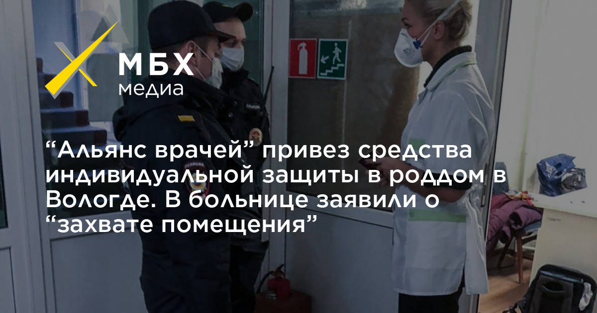 Руководство роддома в Вологде заявило о захвате помещения после того, как «Альянс врачей» привез средства индивидуальной защиты в медучреждение. Об этом «МБХ медиа» сообщила глава независимого профсоюза Анастасия Васильева.