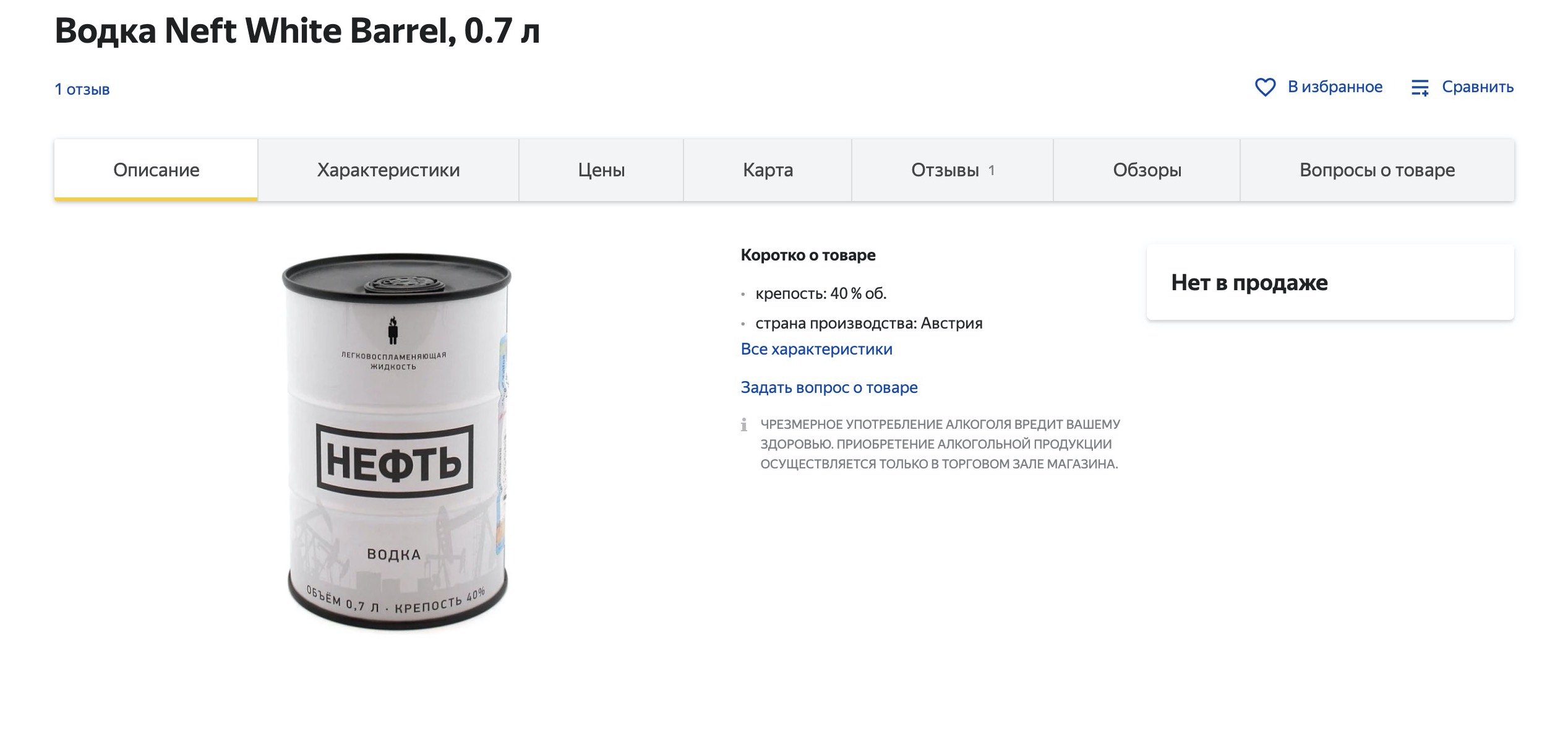 «Яндекс.Маркет» находит несколько предложений «Нефти», одна бутылка стоит около 3 600 рублей, сам Прохоров утверждал, что заплатил 4 000 рублей за ящик.