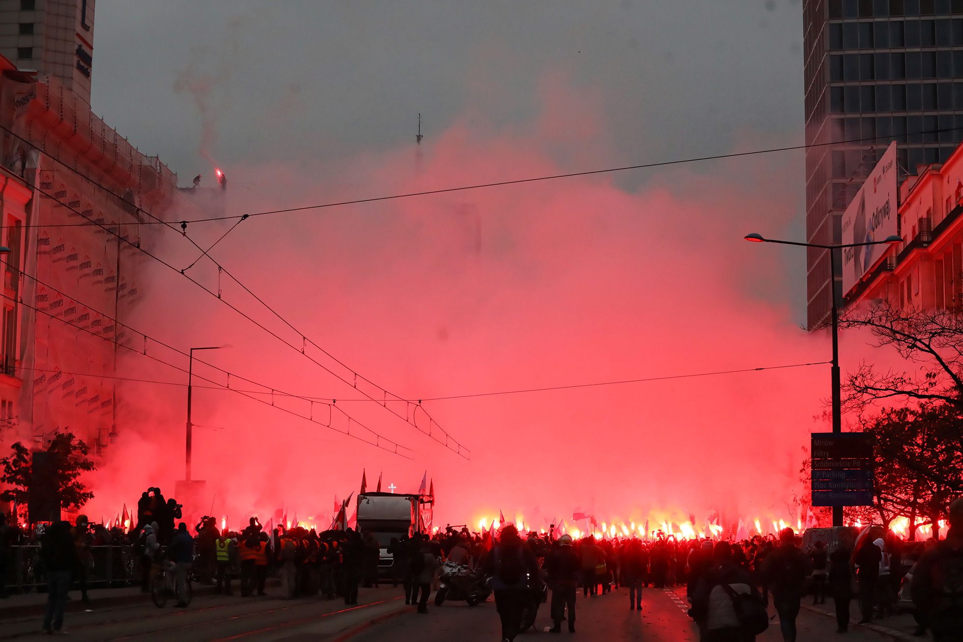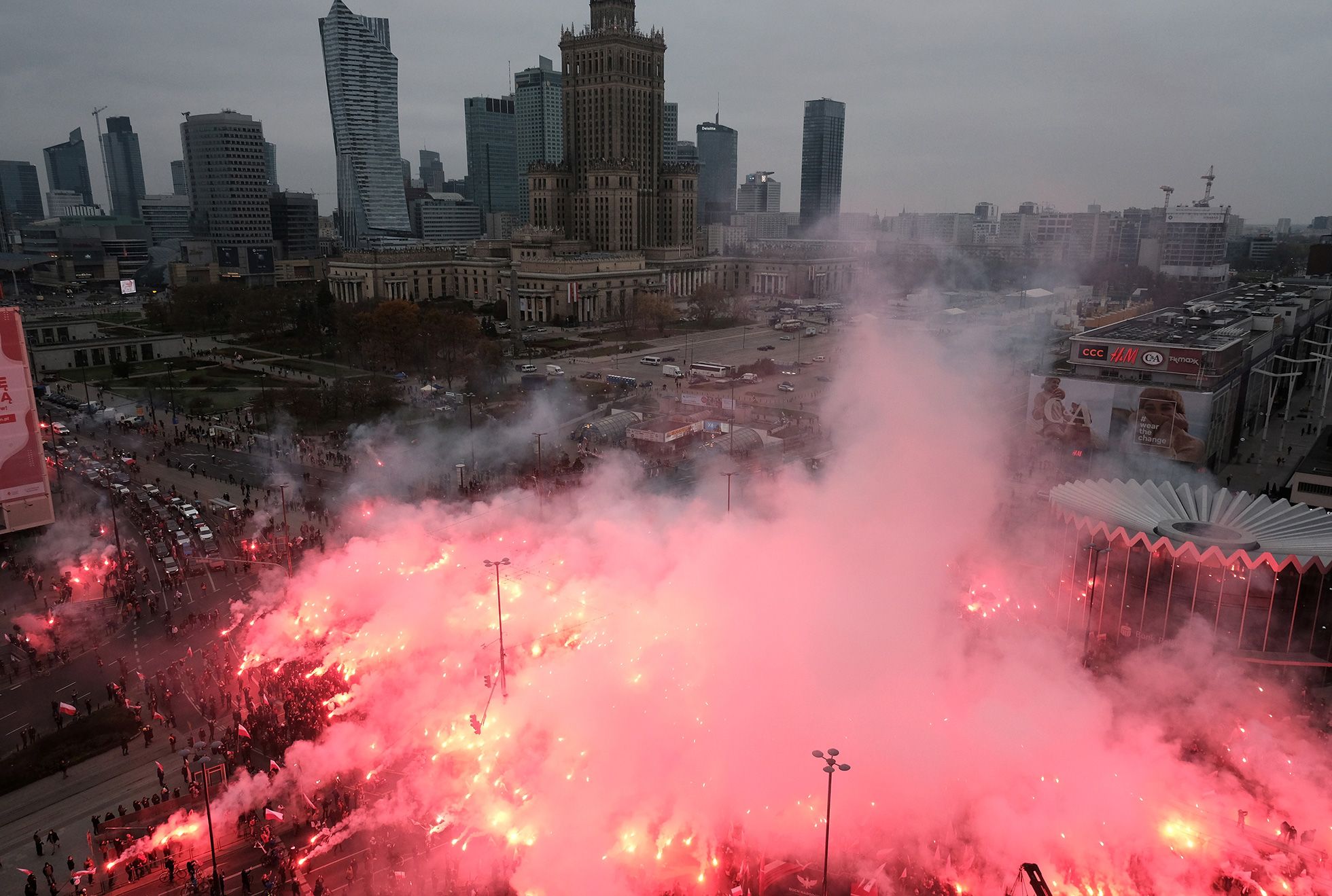 В День независимости Польши 11 ноября в центре Варшавы состоялся марш националистов, в котором участвовали несколько тысяч человек. Первоначально организаторы акции призывали сторонников принимать участие в мероприятии на машинах, велосипедах и мотоциклах, чтобы соблюсти таким образом нормы социального дистанцирования, но большая часть собравшихся шла по улицам пешком. Из-за пандемии массовые мероприятия в Польше запрещены. Вскоре после начала марша полиция потребовала от собравшихся разойтись, после чего начались стычки. Демонстранты применяли камни и бутылки, полицейские — слезоточивый газ, водяные пушки и гладкоствольное нелетальное оружие. Сообщается о нескольких госпитализированных сотрудниках полиции, десятки человек были задержаны. Националисты ежегодно проводят марши в День независимости — и почти всегда они заканчиваются столкновениями с полицейскими или с ультралевыми активистами.