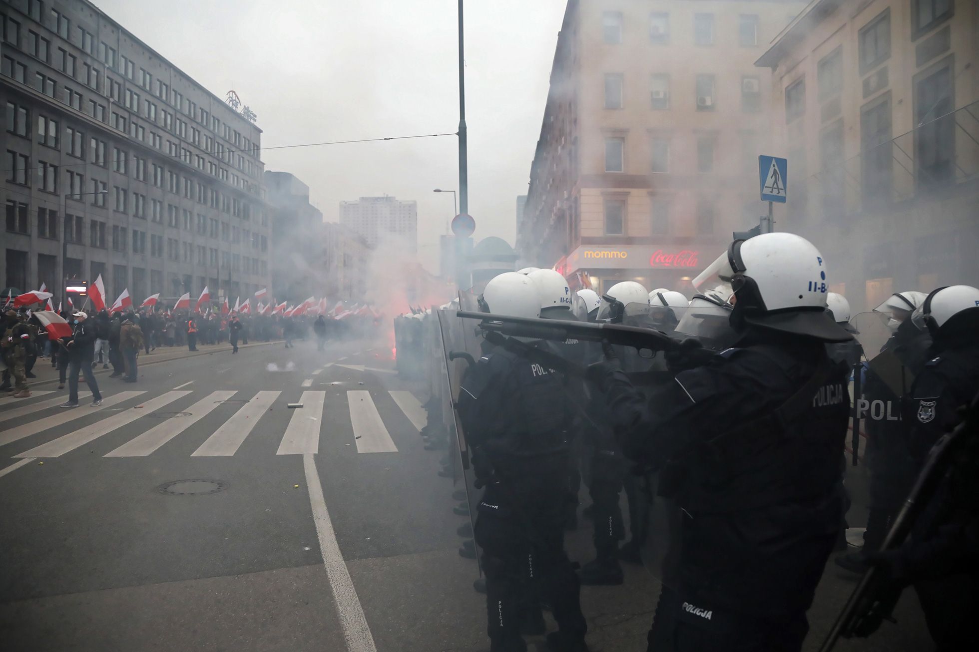 Столкновения националистов с полицейскими в Варшаве в День независимости Польши. Фотографии