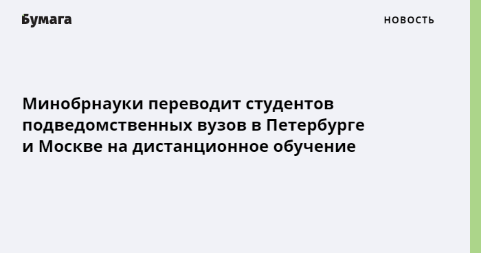 Минобрнауки РФ переводит студентов подведомственных вузов Петербурга и Москвы на дистанционное обучение. Приказ опубликован в телеграм-канале ведомства.