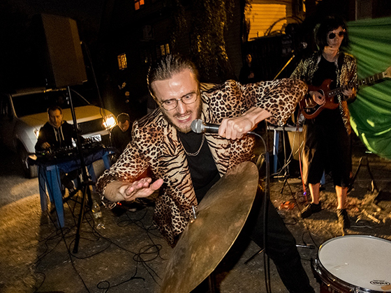 О группе мы изредка вспоминали раз в год, выдавая по мини-песне с клипом, пока нас всерьез не позвали выступить на фестивале у Речпорта под открытым небом между шашлычкой и берегом Казанки. К гигу мы подошли ответственно: подготовили получасовой спектакль, подобрали костюмы, менялись инструментами, пели хором с толпой, и я проливал много вина на айфон, с которого пускал подложкой барабаны в некоторых песнях.