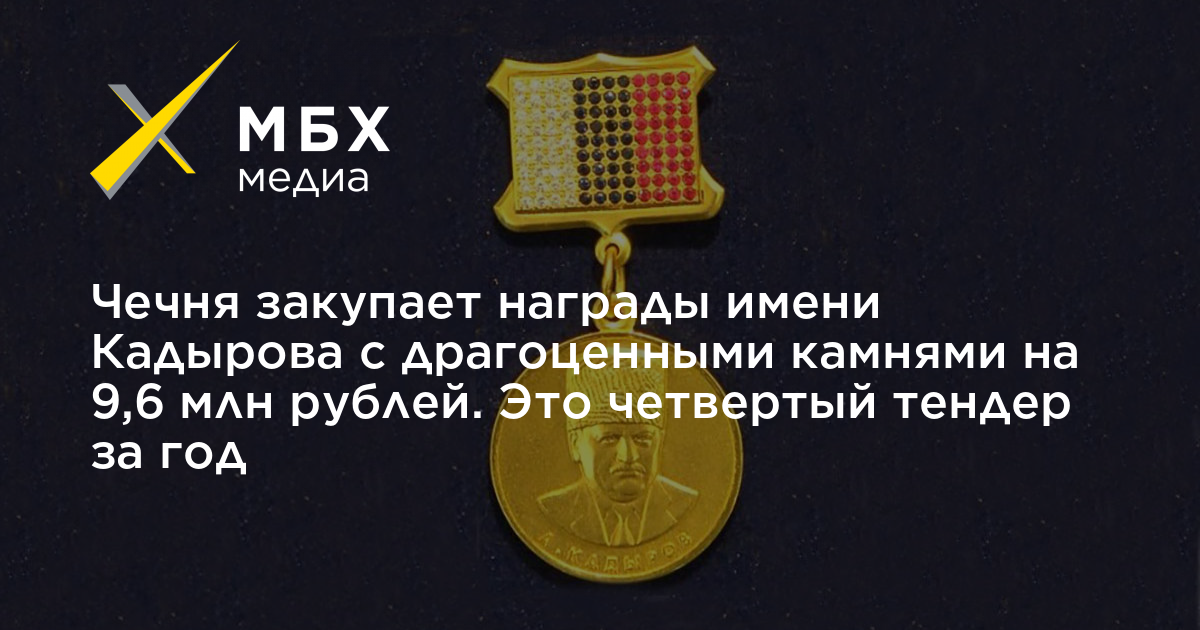 Власти Чечни объявили четвертый за последние 12 месяцев аукцион на закупку орденов и медалей имени первого президента республики Ахмата Кадырова, выполненных из золота и драгоценных камней. Тендер стоимостью 9,6 млн рублей «МБХ медиа» обнаружило на портале госзакупок.