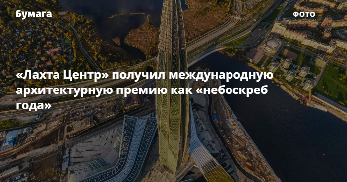 Петербургскому «Лахта Центру» вручили международную архитектурную премию Emporis Skyscraper Award, которую присуждают за выдающийся архитектурный дизайн и функциональность. Об этом говорится на сайте премии.