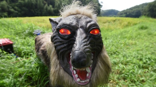 В Японии для отпугивания медведей установили робота-волка — он воет, вращает головой и мигает красными глазами