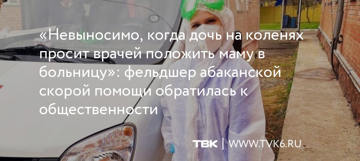 «Невыносимо, когда дочь на коленях просит врачей положить маму в больницу»: фельдшер абаканской скорой помощи обратилась к общественности