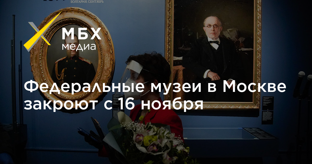 Федеральным музеям в Москве с 16 ноября 2020 года до 15 января 2021 года предписано приостановить деятельность, сообщает ТАСС со ссылкой на пресс-службу Минкультуры.