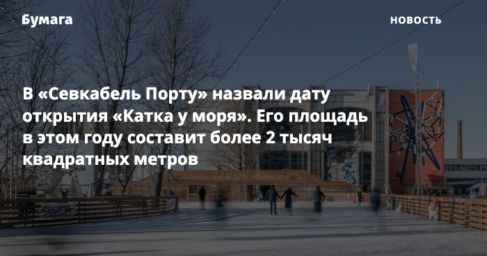 «Севкабель Порт» откроет «Каток у моря» 21 ноября. В этом году площадь ледяного поля составит 2100 квадратных метров, сообщается в инстаграме площадки.