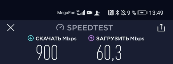 Мы переставили SIM-карты и начали ждать: сначала он подключился к коммерческой LTE-сети «Мегафона», но после перезагрузки сразу же показал заветный значок «5G» на экране. Устройство не пришлось перенастраивать — технология была разблокирована и просто работала, нужен был лишь подходящий частотный диапазон.